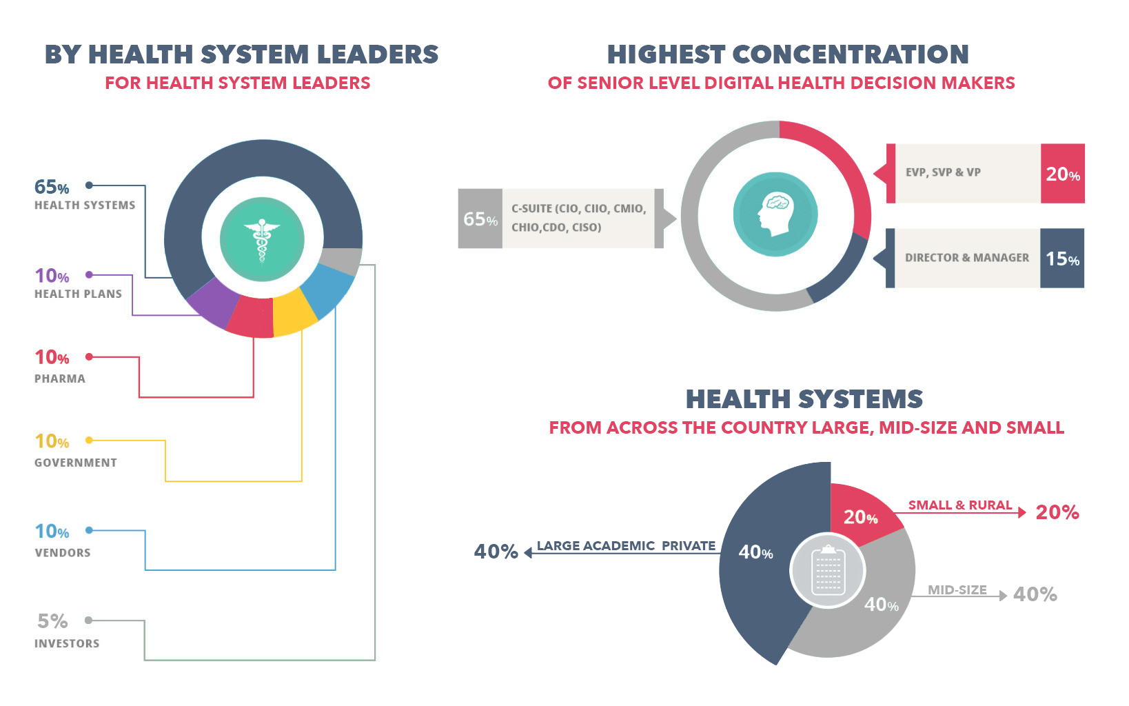 HealthlMPACT is not just another Health IT event. It is an idea exchange among a community of leaders. It is where C- Suite healthcare technology executives come together for dynamic debate that culminates in solutions you can implement and inspiration that doesn't end when you walk out of the conference room. Since 2011 it has become the Nation 's leading C-Suite Health IT Forum where participants challenge the status quo and innovate ahead of the rest. |